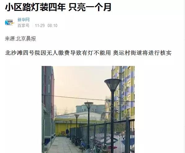 近日,北京晨報的一篇新聞引起了小編的注意,新聞內容如下:劉女士家住朝陽區北沙灘四號院,院子雖然不大,但每晚黑燈瞎火進出并不方便,“小區也不是沒有路燈,但安裝好幾年,除了最開始的一個月,路燈再也沒亮過。晚上這里可黑呢,老人小孩兒要是腿腳不利落,根本不敢出門。”天黑出門難,一直是困擾小區居民的難題。